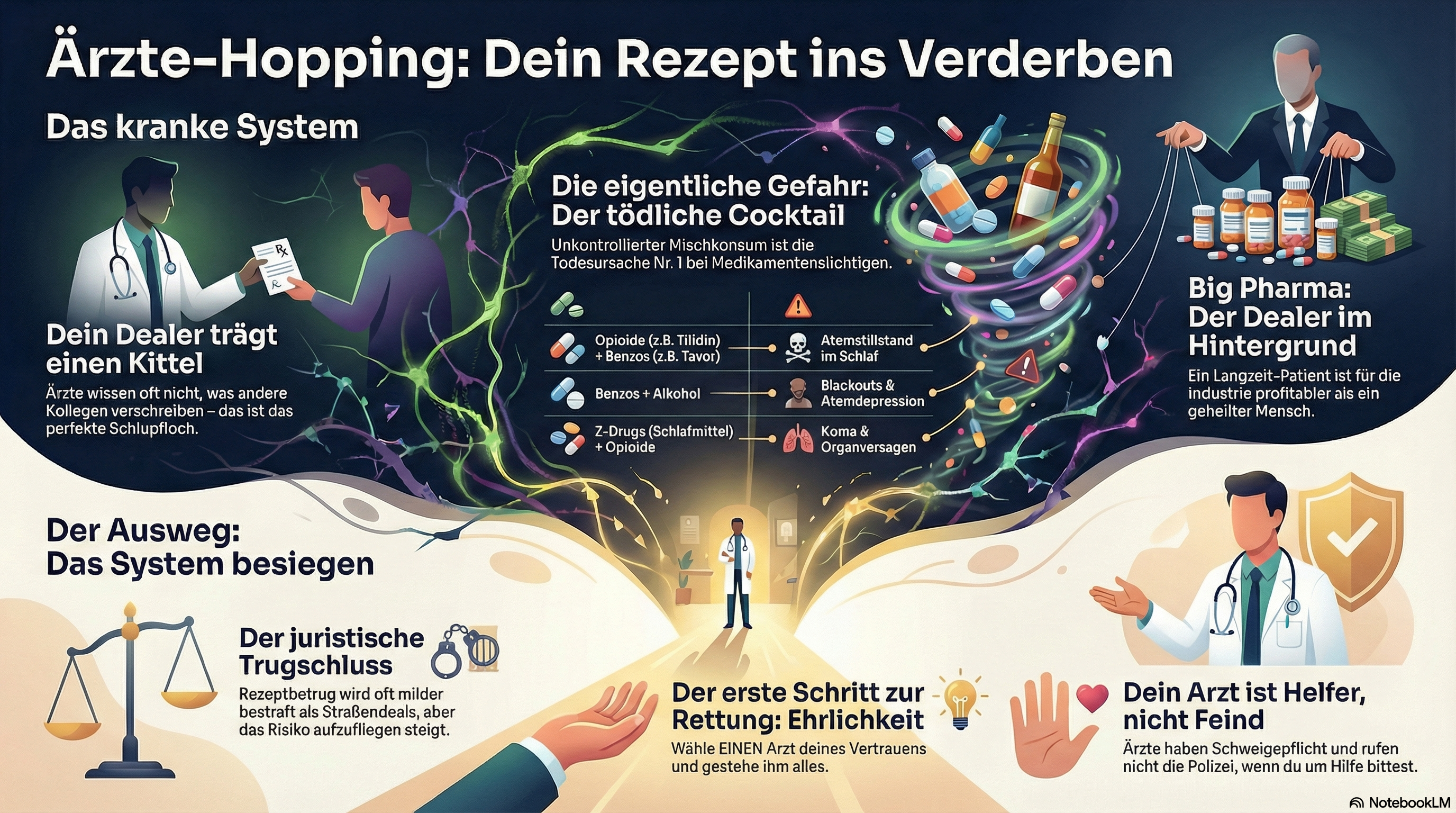 - Die letale Gefahr: Das hohe Todesrisiko durch unkontrollierten Mischkonsum (Polytoxikomanie) als direkte Folge des Ärzte-Hoppings.
