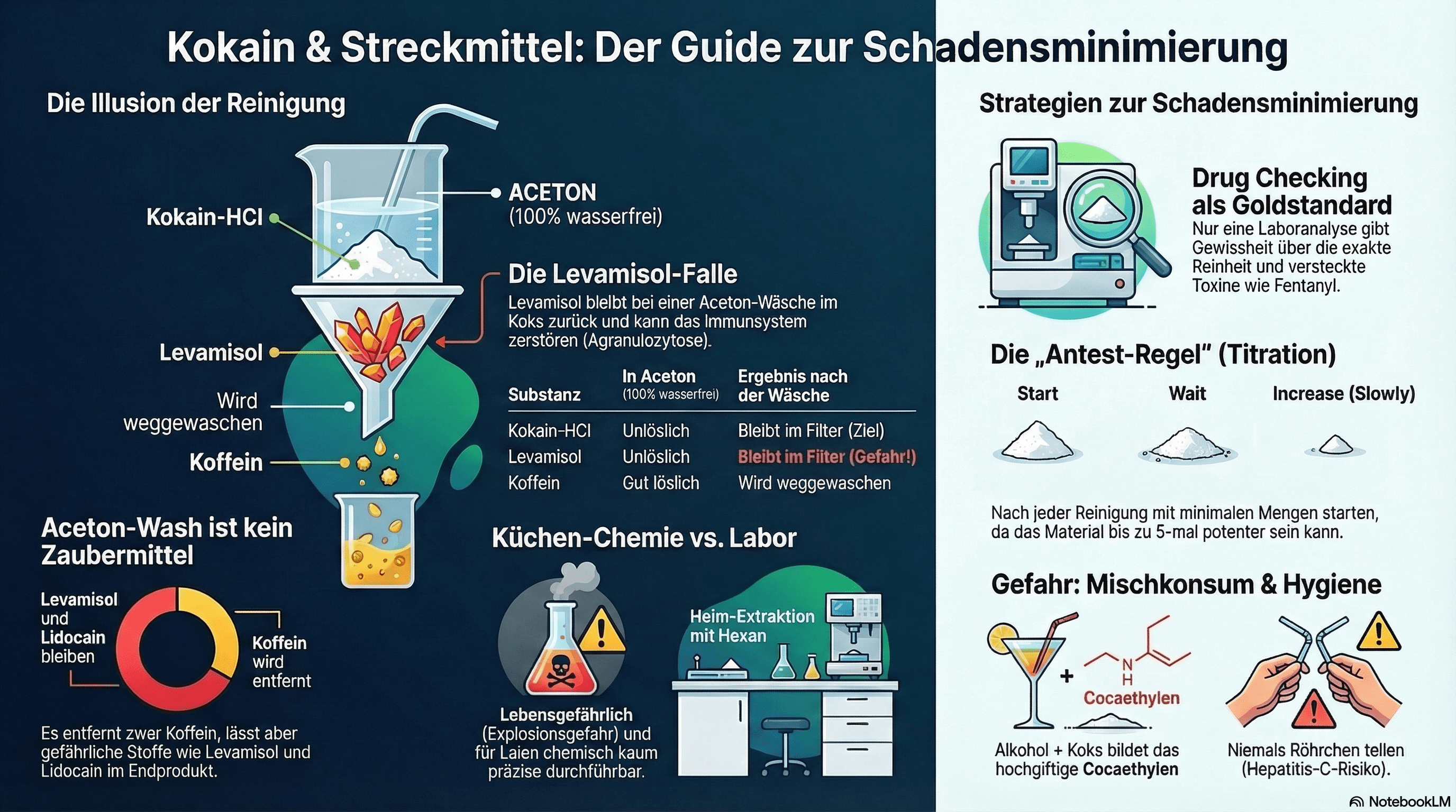 kokain reinigen: kokainreinigung mit Aceton Wash kann Risiken durch unlösliche Streckmittel wie Levamisol reduzieren, macht den Konsum aber nicht sicher. suchthilfe.de/tag/drug-checking/" class="nx-auto-link" title="Mehr zu: Drug Checking">Drug Checking ist der Goldstandard zur.