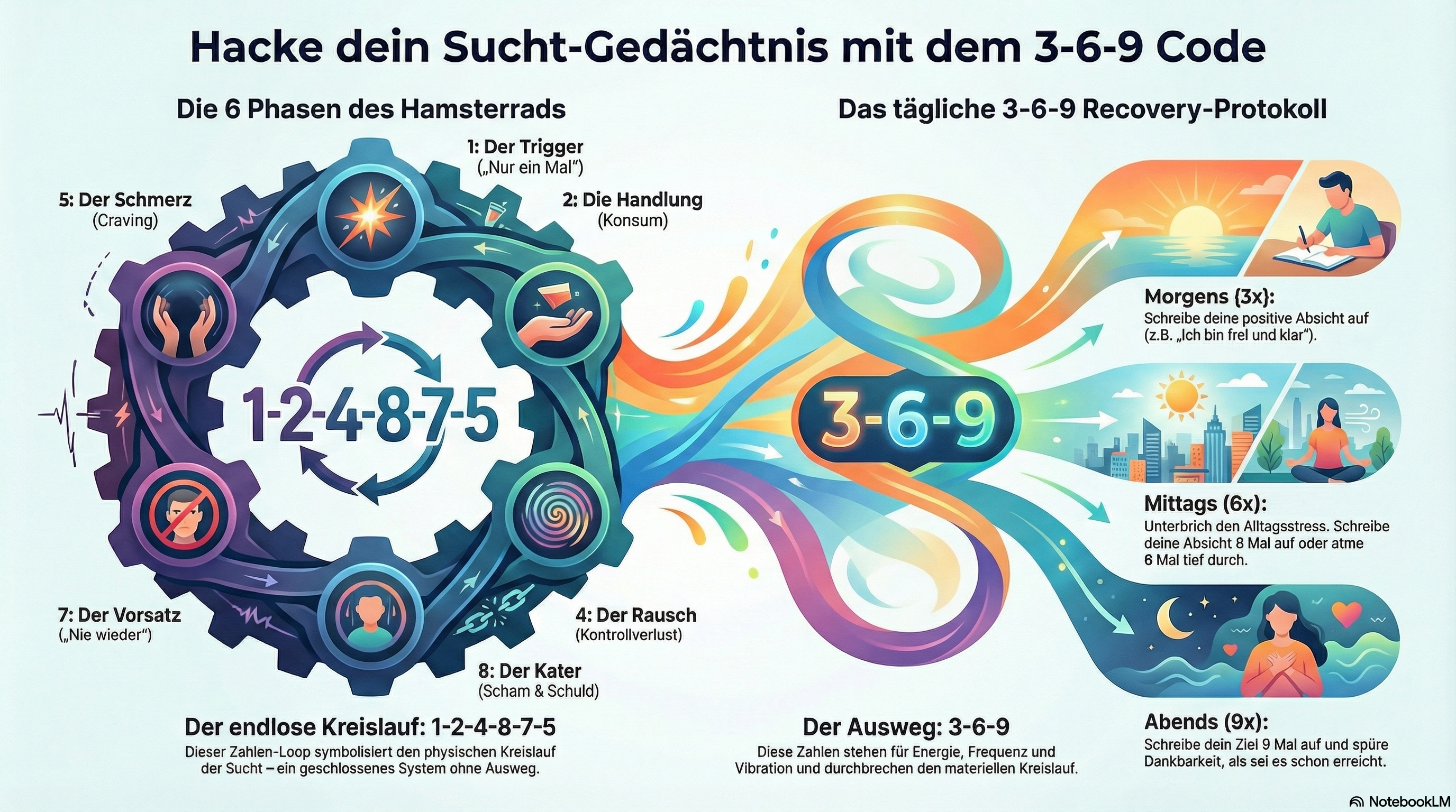 Die 3-6-9-Methode hilft dir, deine Frequenz bewusst zu verändern und dem Suchtkreislauf die Energie zu entziehen.